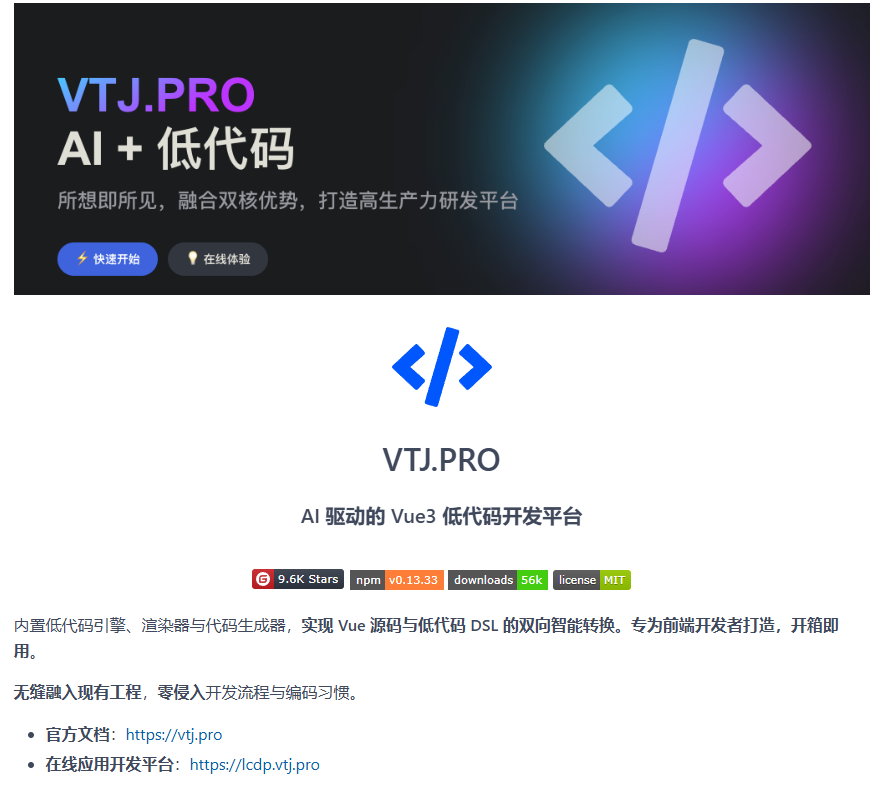项目名称: VTJ.PRO - AI驱动的Vue3低代码开发平台
