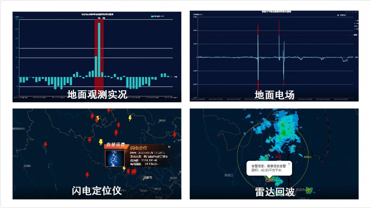 具备对关键区域雷电、降水、地面大风和浅层大风的实时监测能力,通过多监测报警类型、多要素灵活动态的配置表,实现对雷达、卫星等数据的实时监控,并根据预报数据提前发出预警信息。