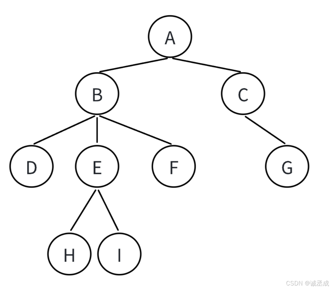 堂兄弟节点:双亲在同一层的节点互为堂兄弟;如上图:H、I互为兄弟节点