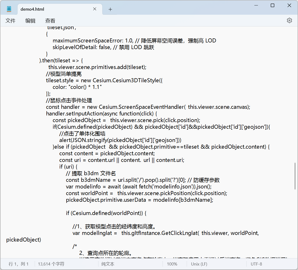 同时导出了基于cesium的3dtiles加载和单体化拾取建筑代码 。代码中详细注释了cesium点击事件,楼栋单体化高亮代码。