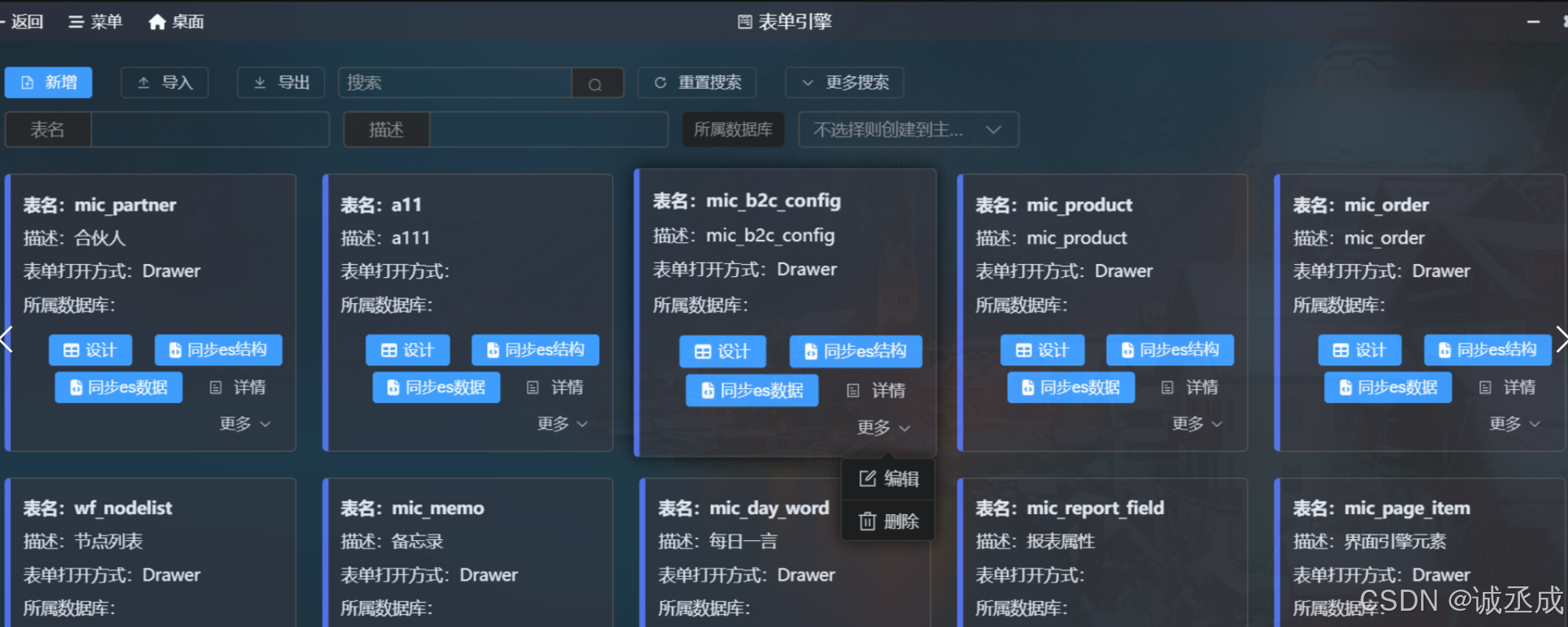 模块引擎即常规理解的“系统菜单配置”,包括了菜单基础配置、数据源配置、更多按钮配置、替换配置等。优点: 可以使用表单引擎去设计模块引擎,自由新增配置项,比如说前段时间刘老师需要给“菜单配置”新增一个“App是否显示”的配置项,10秒解决。 模块设计操作