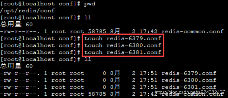 复制 redis-6379.conf 的内容至 redis-6380.conf redis-6381.conf 并且修改其