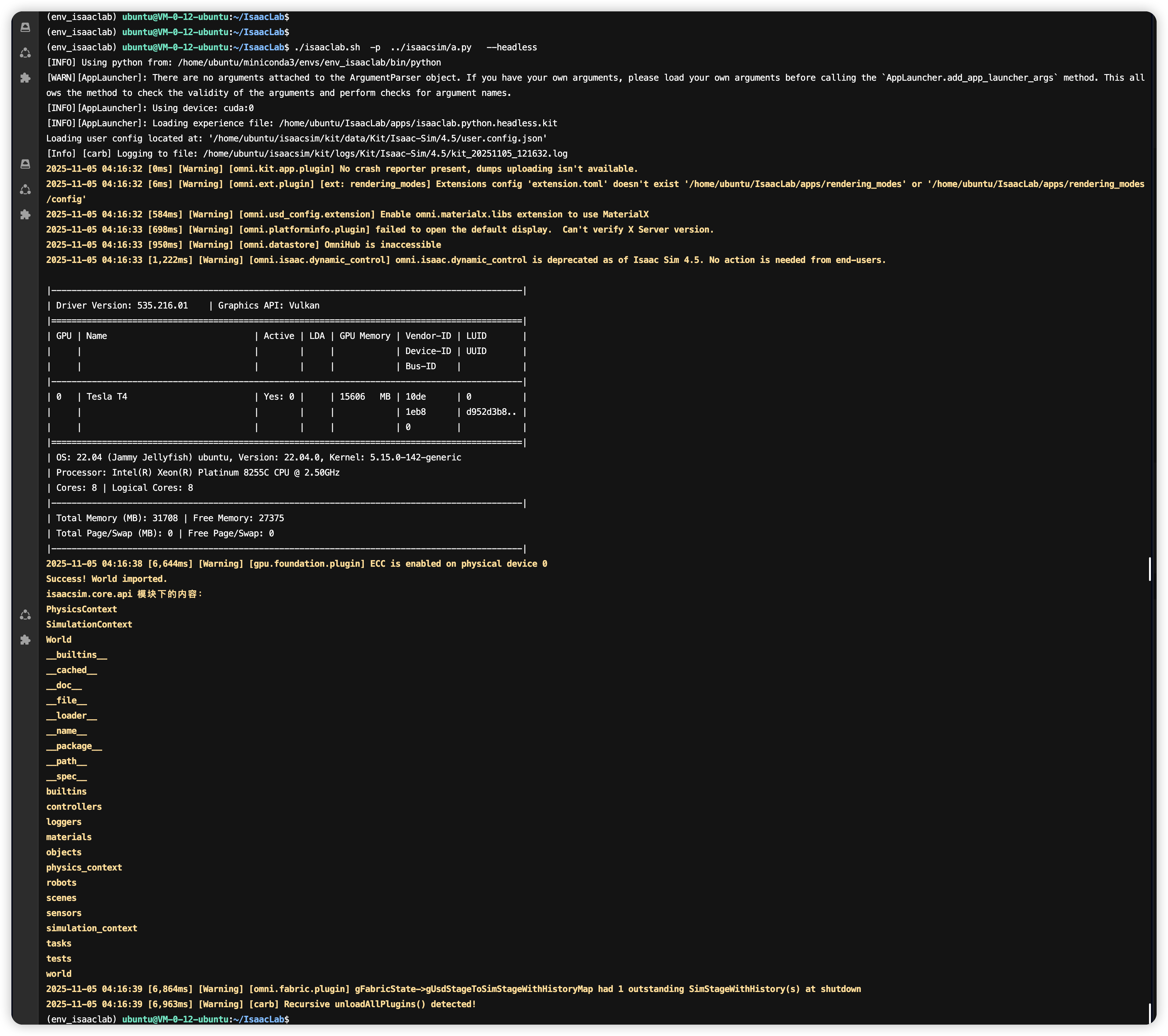 print(item)然后在IsaacLab的Conda环境下,执行上述代码,具体如下。