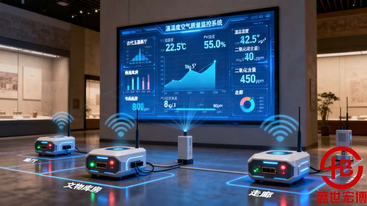 • 特殊区域强化:书画修复室增加恒湿监测模块,青铜器库房增加腐蚀性气体(如 SO₂、NO₂)传感器。