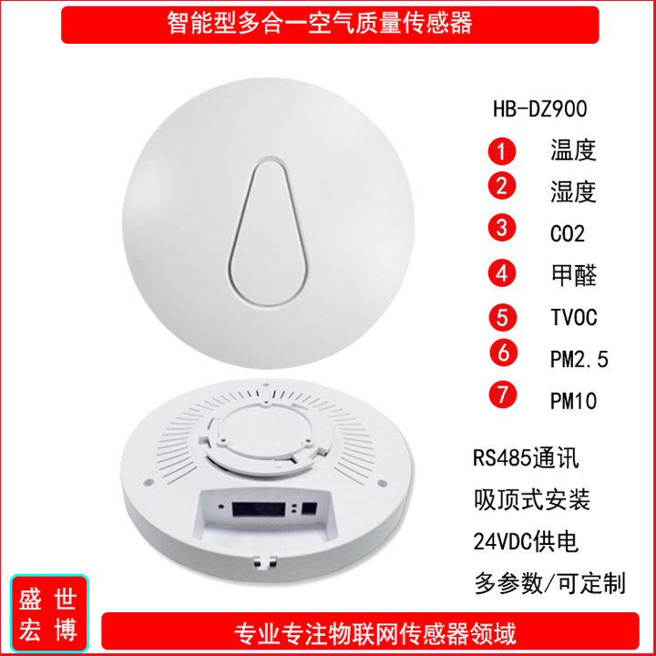 PM2.5/PM10 传感器 | HB-DZ900 | 量程 0-1000μg/m³,精度 ±10% | 库房 / 展厅 |