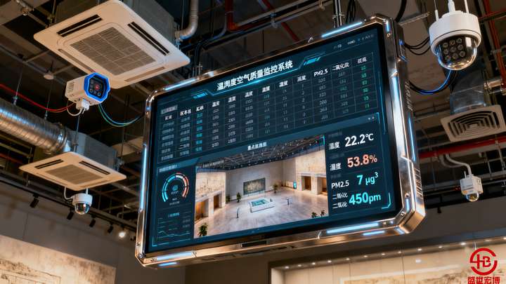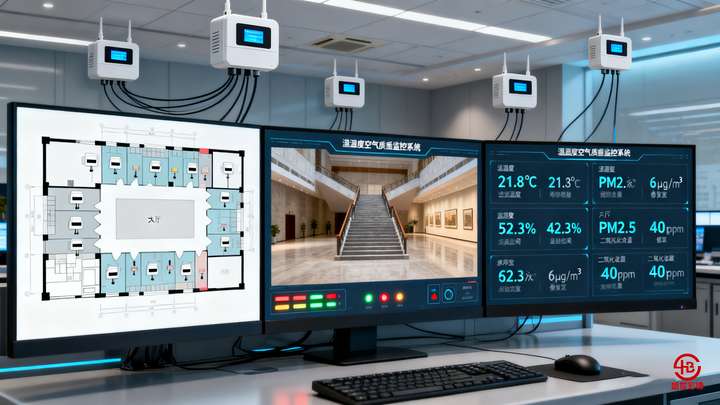 ◦ 展厅:带显示屏的温湿度空气质量一体机(如 Aosong AQ302),每 100㎡1 个,兼顾游客查看;
