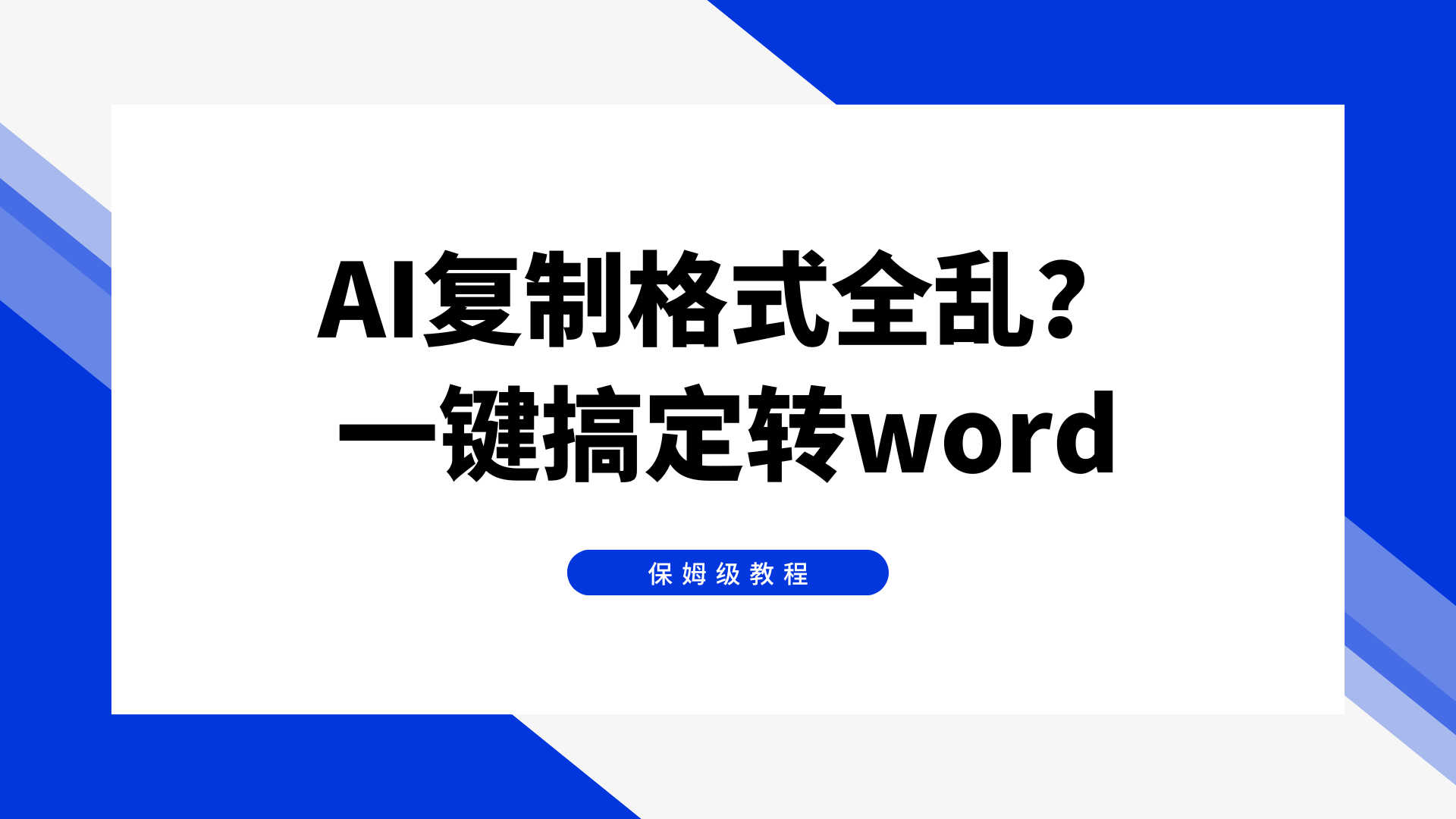经常用 Deepseek、kimi、豆包等大模型生成内容,复制粘贴到 Word 时总踩坑?自带的 Markdown 语法不仅让文档乱码、格式错乱,影响美观,还可能造成内容误解,太影响效率了!