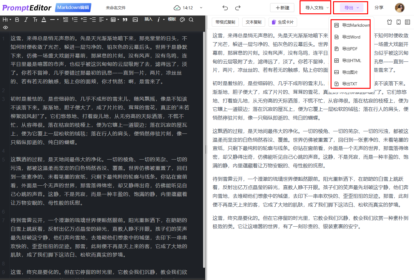 不管是常靠 AI 写文案的内容创作者、编技术文档的工程师,还是写学术论文的研究人员、新媒体运营,用它都超合适。除了文档转换、导出 PDF,它还支持长文本转图片,方便在社交平台分享传播。