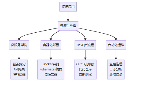 1. 云原生改造 迁移只是第一步,要真正发挥云平台的价值,还需要进行云原生改造: