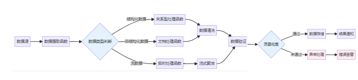 这个状态图展示了一个典型的数据处理流程。每个状态都是一个独立的云函数,状态间的转换由编排引擎控制。这种设计的好处是显而易见的:每个函数职责单一,易于测试和维护,而且可以根据业务需要灵活调整流程。