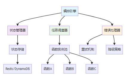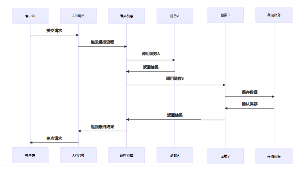 这个时序图清楚地展示了事件驱动的执行流程。每个函数的执行结果都会产生一个事件,编排引擎根据这些事件来决定下一步的操作。这种设计让系统具有很好的解耦性和可扩展性。