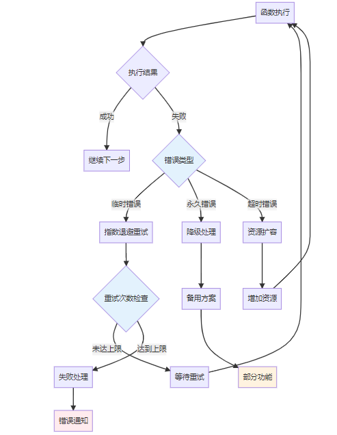 这个错误处理流程图展示了一个完整的容错策略。通过分类处理不同类型的错误,系统可以在各种异常情况下保持稳定运行。关键是要识别错误的本质,然后采取相应的处理策略。