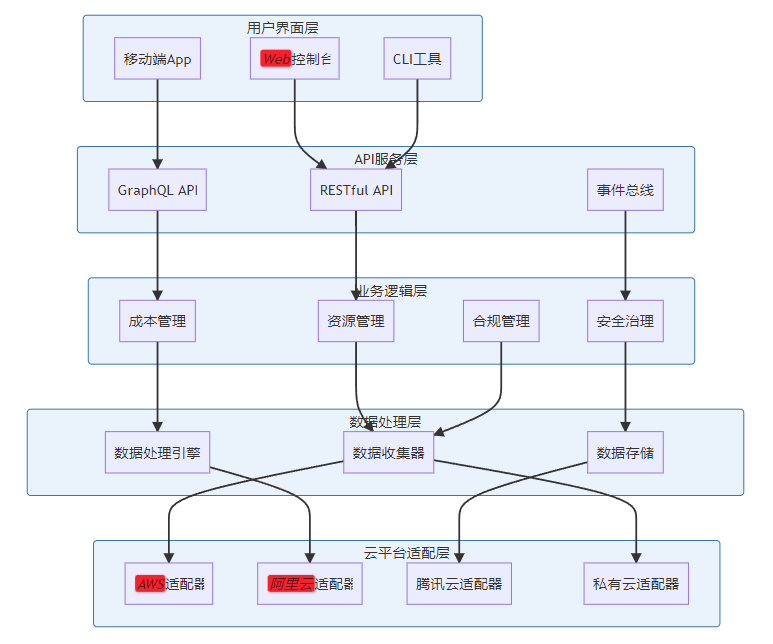 一个完整的多云治理平台通常包含以下几个层次: