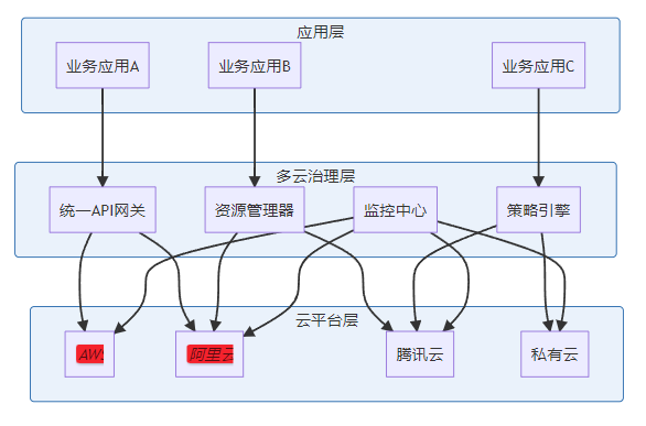 多云治理的核心是建立一个抽象层,将不同云平台的差异屏蔽掉: