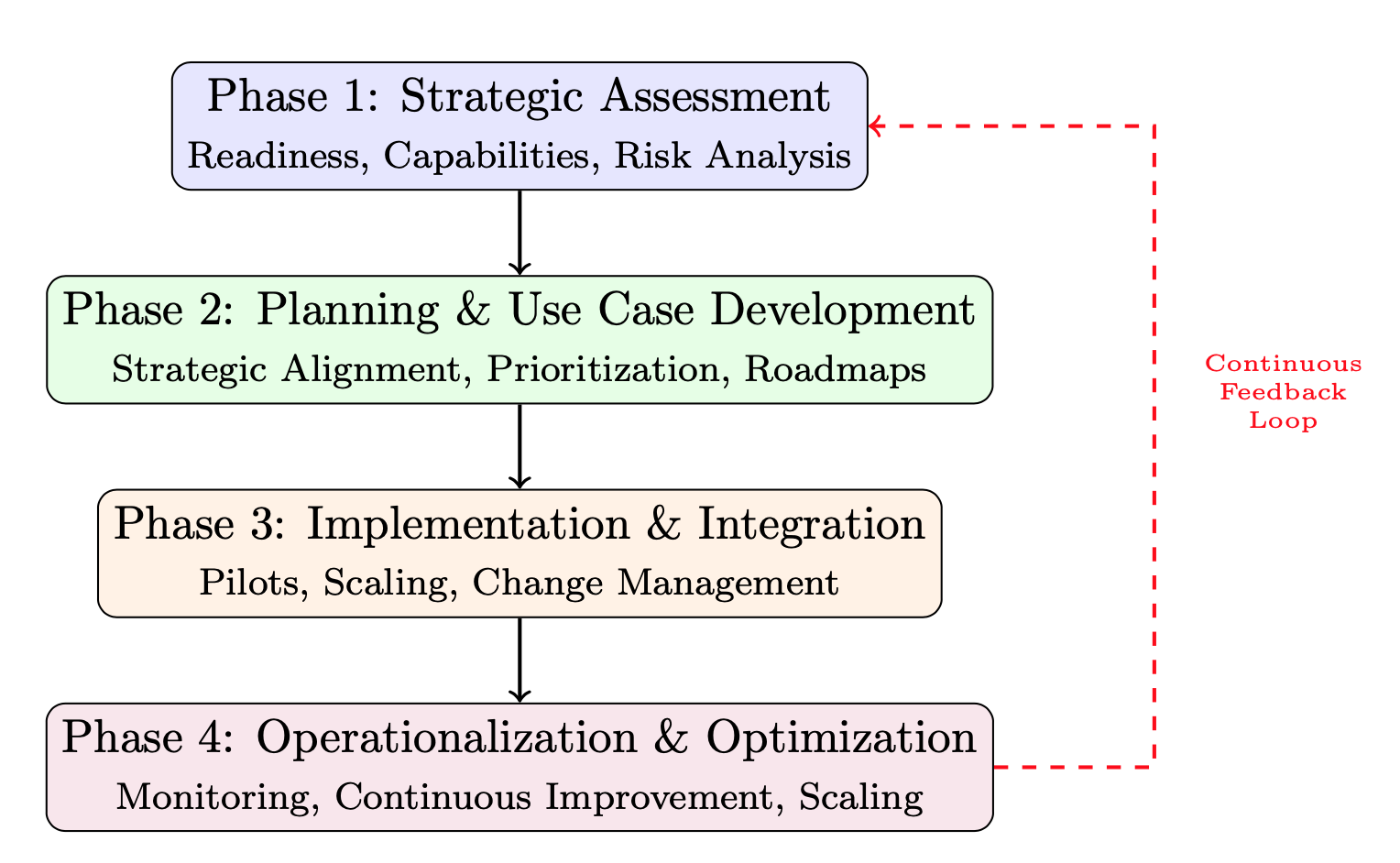 对于中型组织而言,此阶段的重点是聚焦。它们必须利用评估结果,识别出资源约束下最可能成功的切入点。例如,选择一个数据质量高、流程清晰、且GenAI能带来显著效率提升的特定业务单元(如客户服务或营销内容生成),而不是盲目追求全面转型。它们的评估必须回答:我们能否在不增加过多管理负担的情况下,快速验证价值?