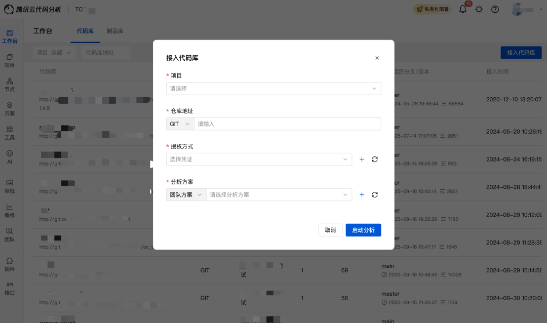 注:如需使用该功能,请联系腾讯云代码分析开通。