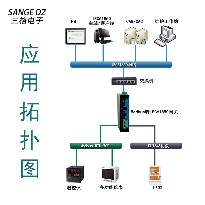 为解决这一问题,三格电子推出的Modbus转IEC61850网关,型号:SG-IEC61850-Modbus,成为连接这两个世界的桥梁,实现了Modbus RTU/TCP和DLT645协议到IEC61850标准的无缝转换。
