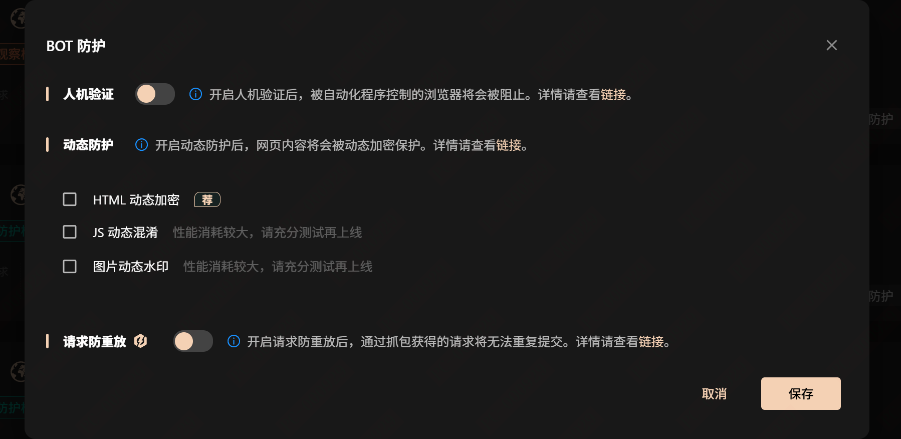 脚本的核心逻辑很简单:获取请求头中的设备类型信息,判断是否为移动端,不是则拦截并返回 “当前接口仅支持移动端调用,请使用手机端访问”。进入雷池控制台 “防护配置”→“Lua 脚本” 模块,上传脚本并选择生效的 API 站点,点击 “启用” 立即生效。