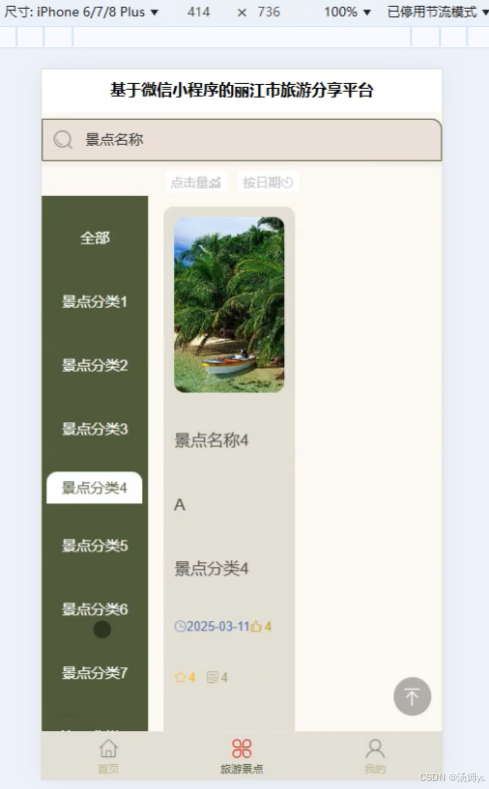因此,开发一个基于微信小程序的丽江市旅游分享平台具有重要的现实意义。该平台可以整合丽江市的旅游资源,为游客提供一站式的旅游服务,同时利用协同过滤推荐算法为游客提供个性化的旅游景点推荐,提高游客的旅游体验。此外,平台还可以为游客提供一个分享旅游经历和心得的社区,促进游客之间的交流和互动。