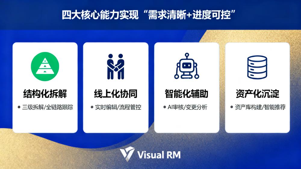 对于金融行业乃至其他需要复杂需求管理的领域,Visual RM 不仅是一款工具,更是一套 “需求全生命周期数智化管理方案”。它帮助企业将需求转化为核心资产,推动研发管理从 “经验驱动” 向 “数据驱动” 转型,为数字化项目的成功落地提供坚实保障。