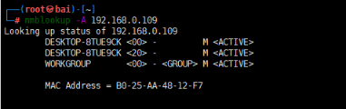 通过nmblookup查看主机名和mac
