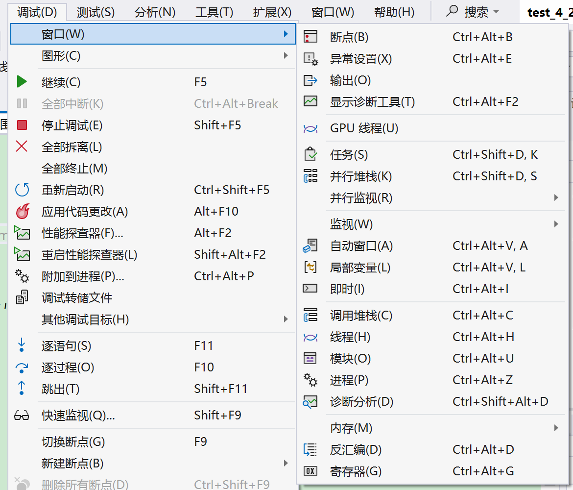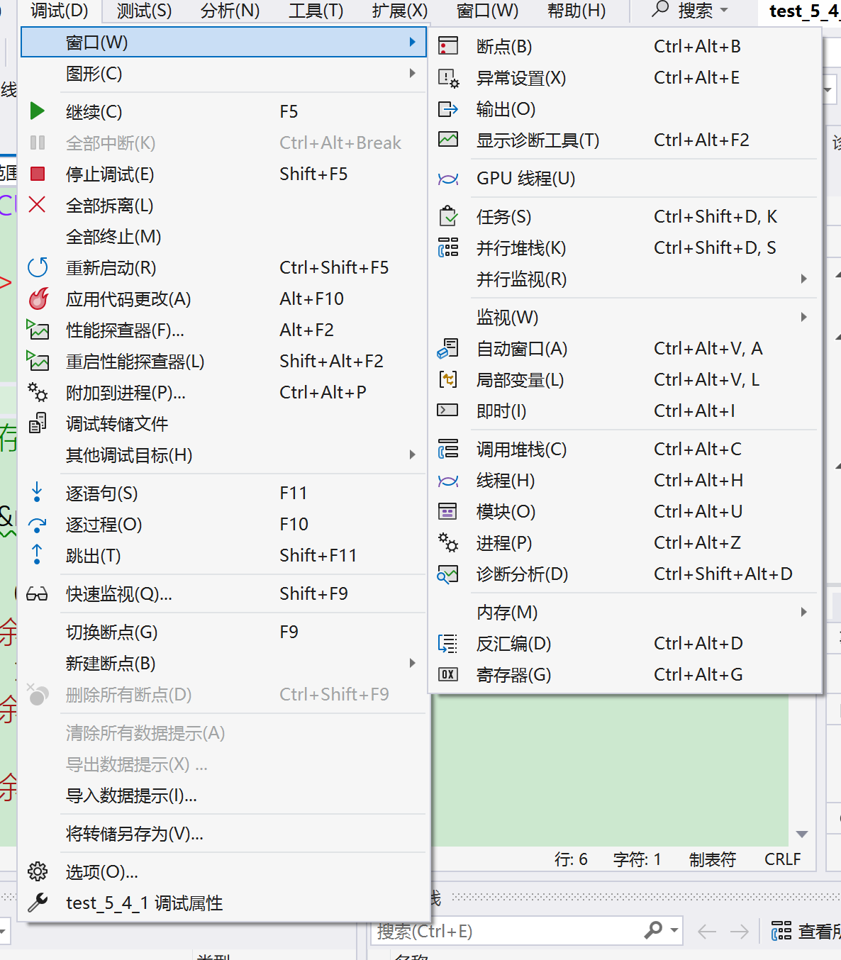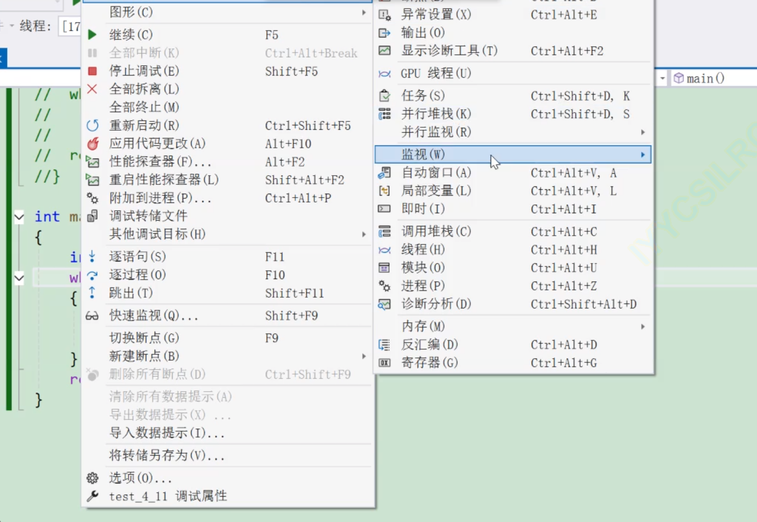 在摸索中,我发现有监视功能的朋友们的VS在窗口(W)中和我的不太一样,这是我的——