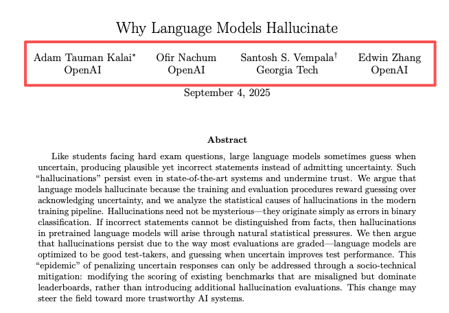 1. https://cdn.openai.com/pdf/d04913be-3f6f-4d2b-b283-ff432ef4aaa5/why-language-models-hallucinate.pdf