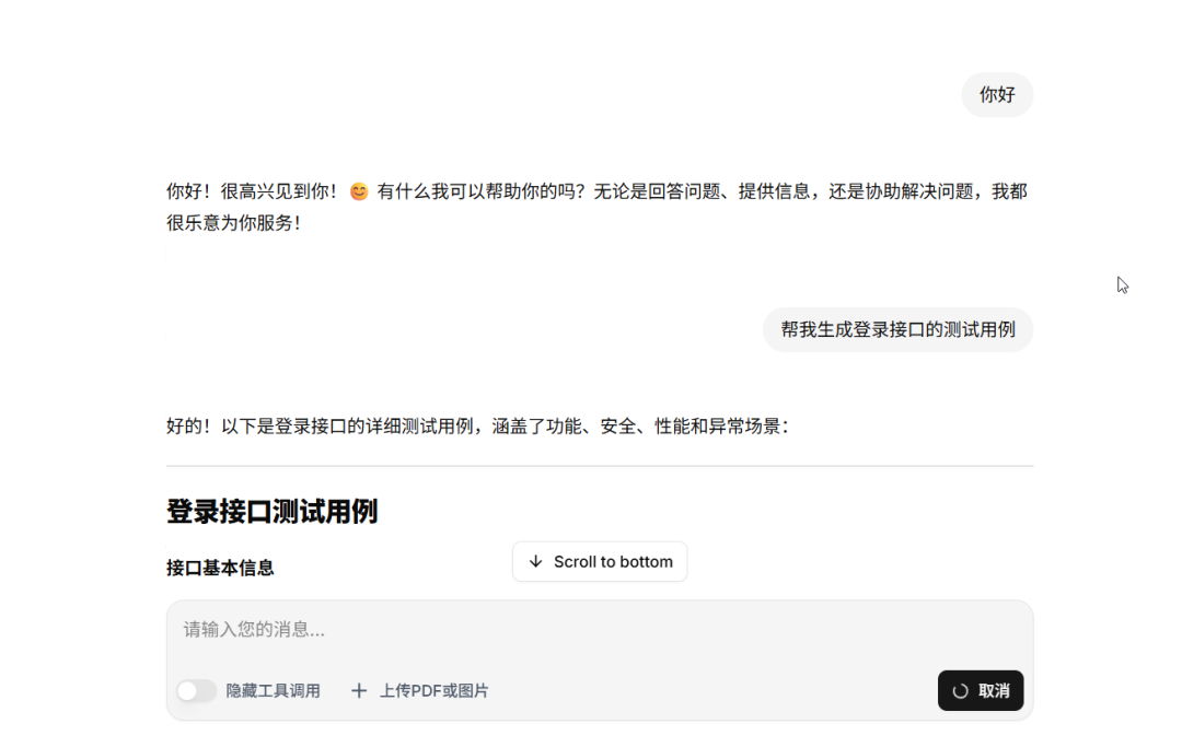 掌握了上面的内容之后,可以考虑自己做一个直接将智能体的输出显示在前端页面的功能,可以借助AI工具去实现,可以实现类似GPT官网对话窗口的效果:
