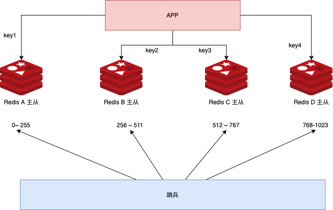 「主从 + 哨兵」模式非常健壮,但假如缓存数据量非常大,这种模式就有瓶颈了,于是需要多组 Redis 实例才能满足业务需求。