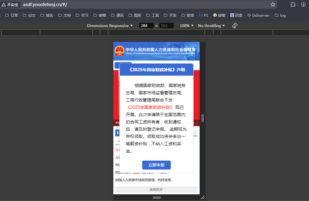 该钓鱼网站通过技术手段(环境检测、加密、指纹追踪)结合社会工程(伪造邮件、政府通知),诱导用户提交银行卡、身份证等敏感信息。攻击者利用Vue.js构建复杂交互流程,后端通过加密传输数据规避检测。用户需警惕“官方通知”类邮件中的不明链接,并注意域名真实性。