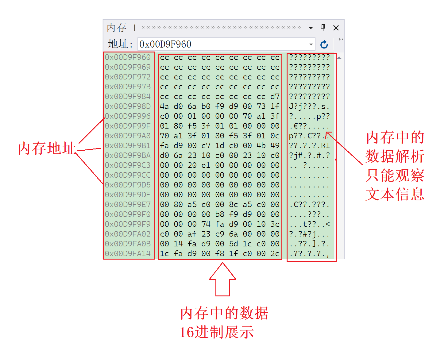 我们可以在内存窗口中观察数据:
