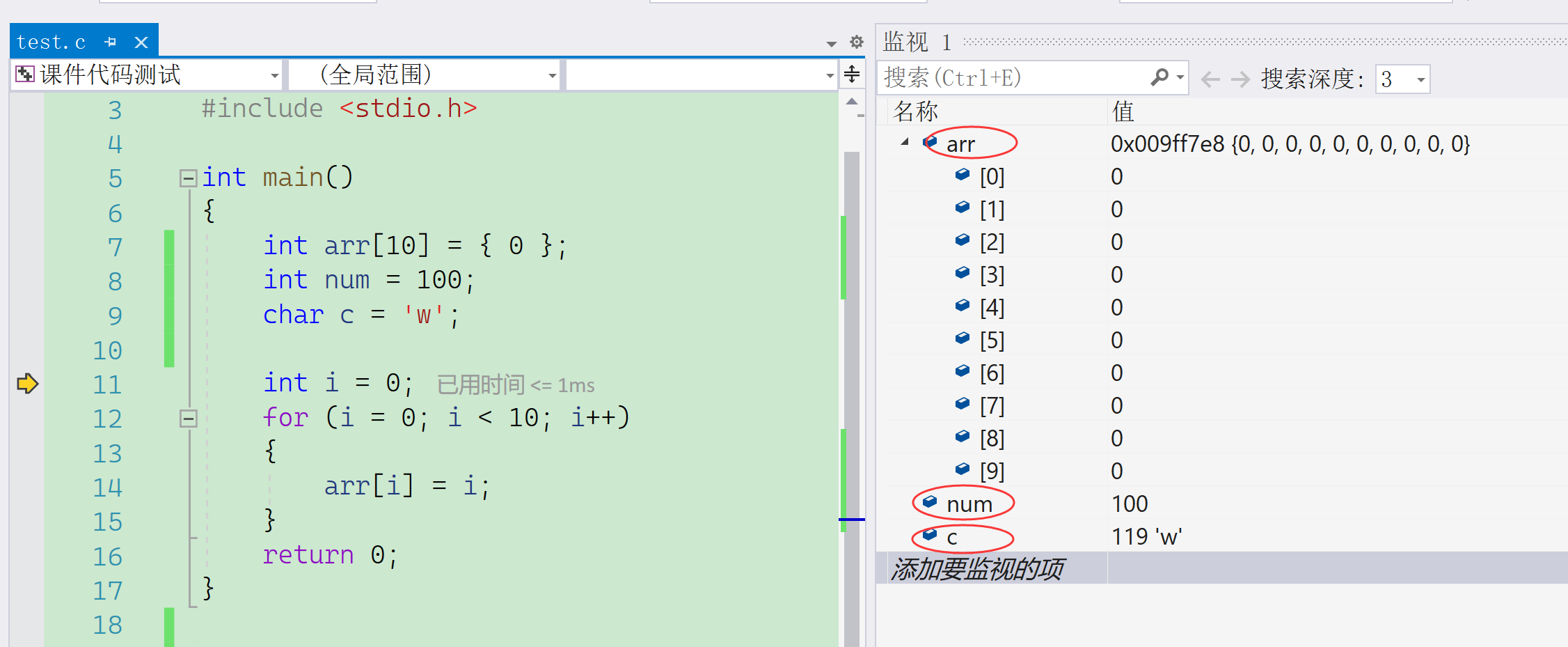 像这样,在监视窗口中观察: