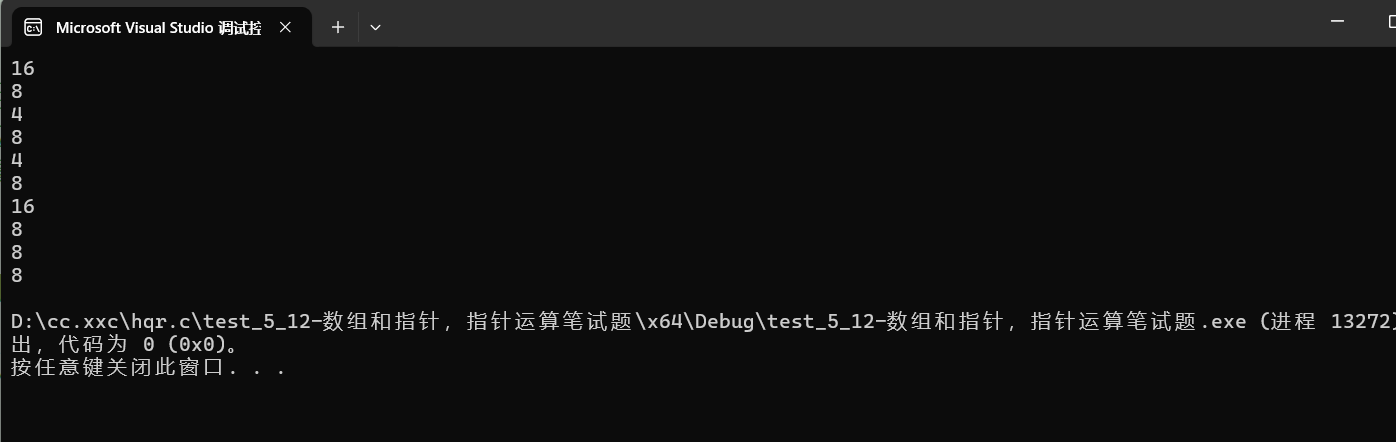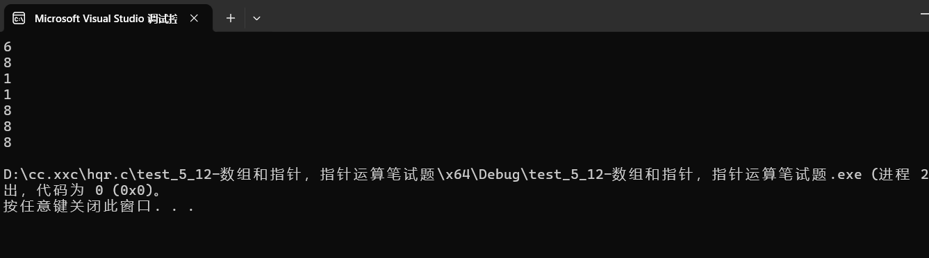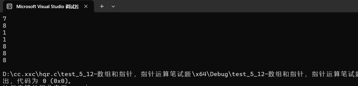 这里关于指针运算,博主放了七道题目,大家自己尝试算一算,解析会配在每道题后面: