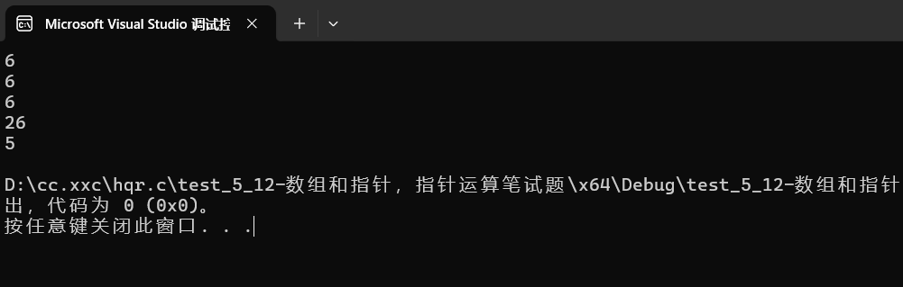 字符数组这儿有六个代码,和一维数组那儿一样,友友们可以尝试算一下结果: