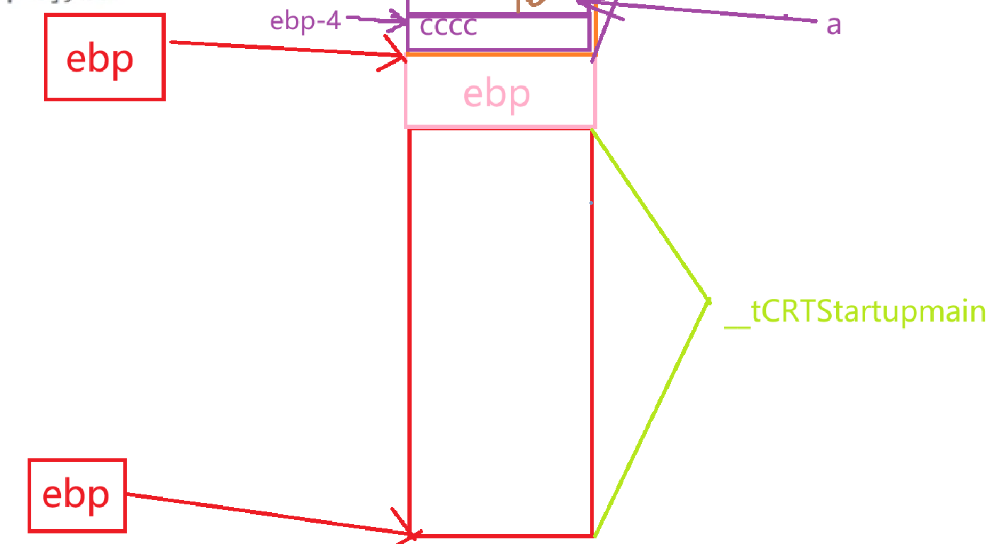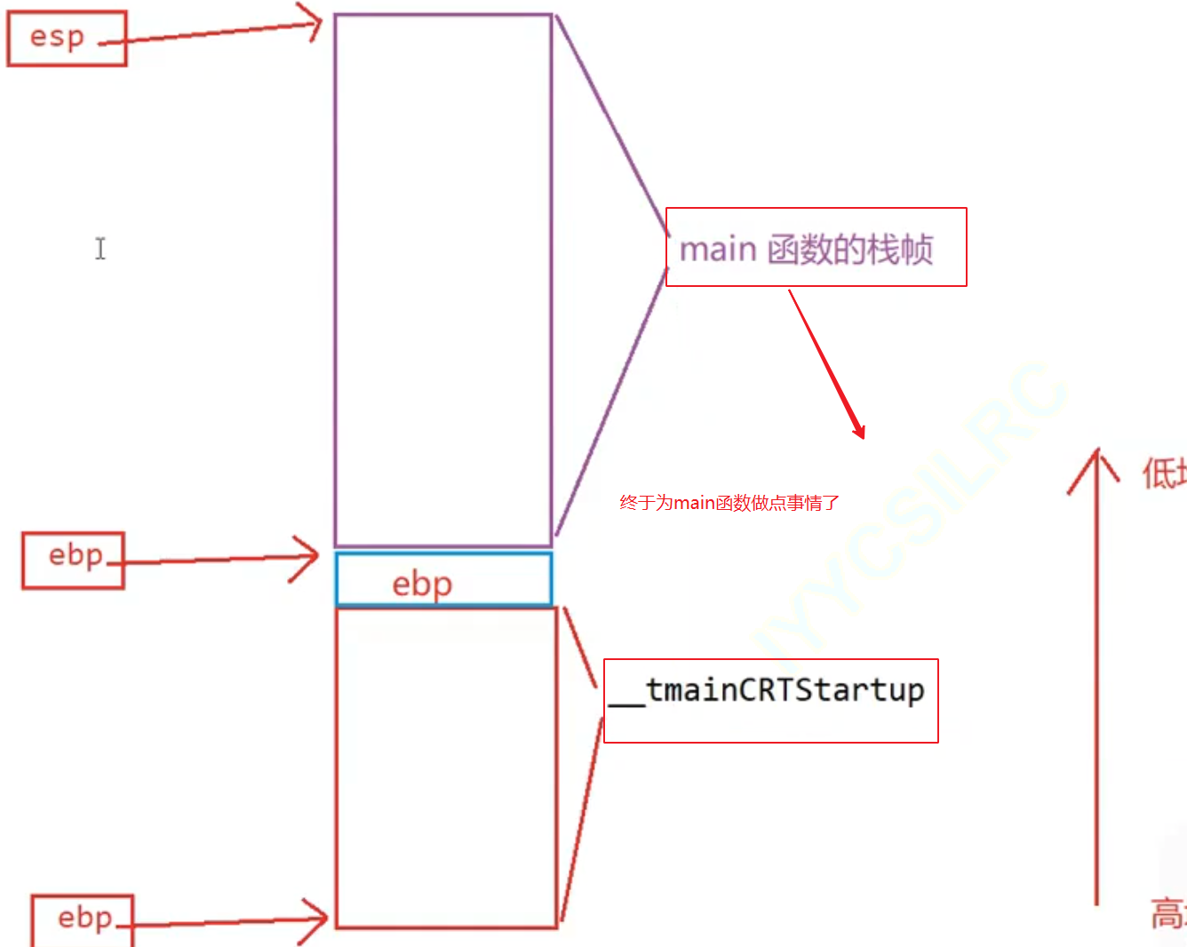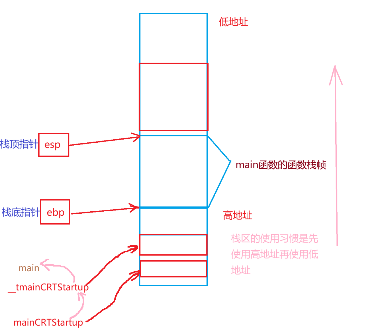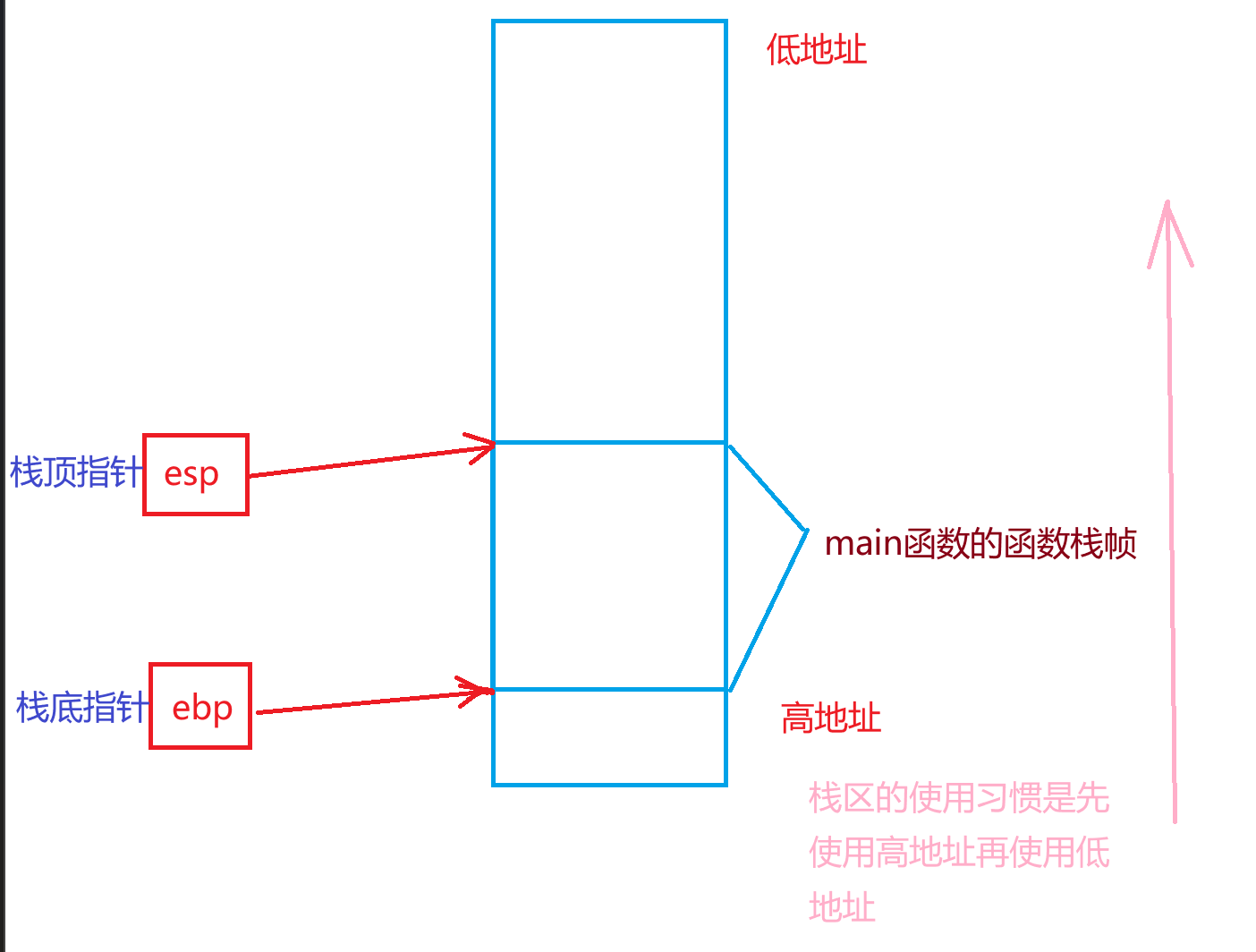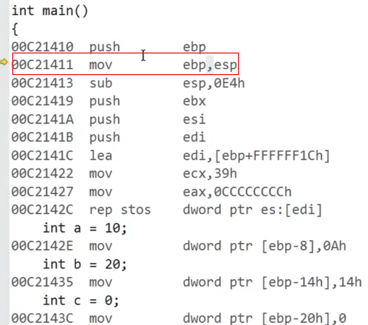 //结合上面产生的ebp之后,ebp和esp之间就维护了一块为main函数开辟的栈帧空间