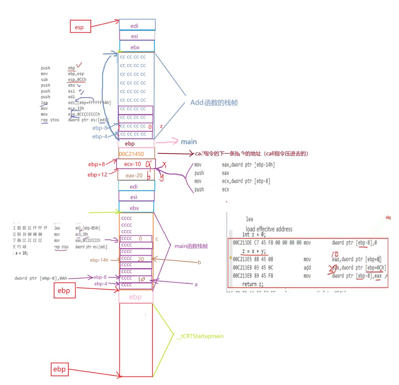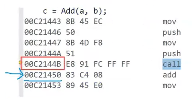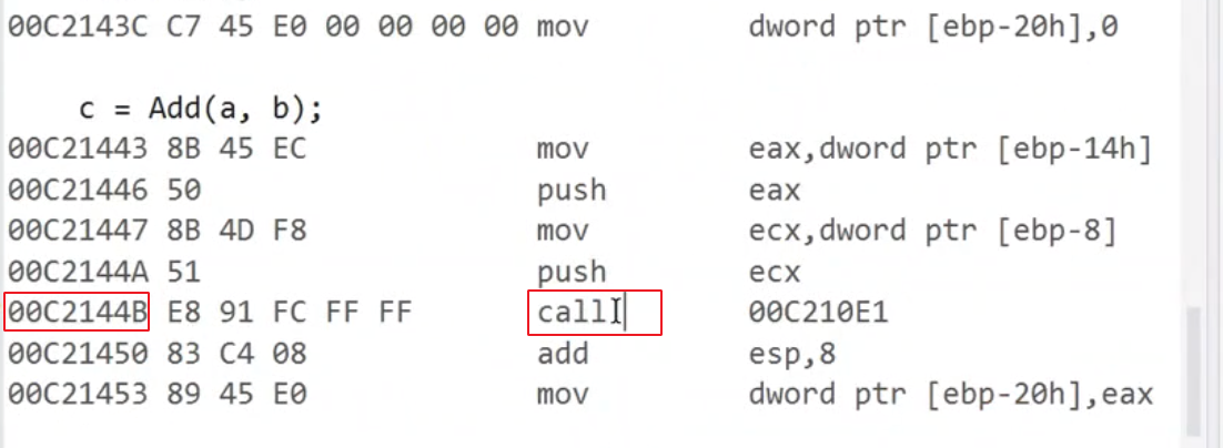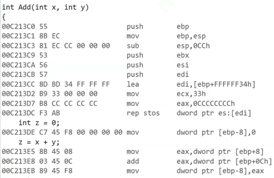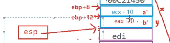 //将esp-00ch,形成了Add函数的esp,结合前面的ebp,ebp和esp维护了一块为Add函数开辟的栈帧空间