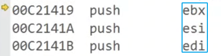 eax:通用寄存器,保留临时数据,常用于函数返回值; ebx:通用寄存器,保留临时数据; eip:指令寄存器,用于存储下一条要执行的指令的地址。