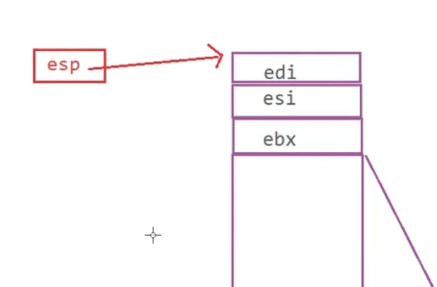 这时候我们在顶上压了三个元素,此时esp已经挪到上面去了,这里我们可以得出一个小结论:
