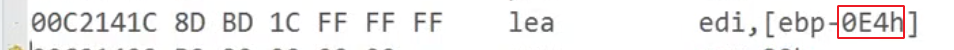 //将esp中的地址减去一个16进制数字0E4h,esp向上移动,产生了新的esp,也就是main函数的esp