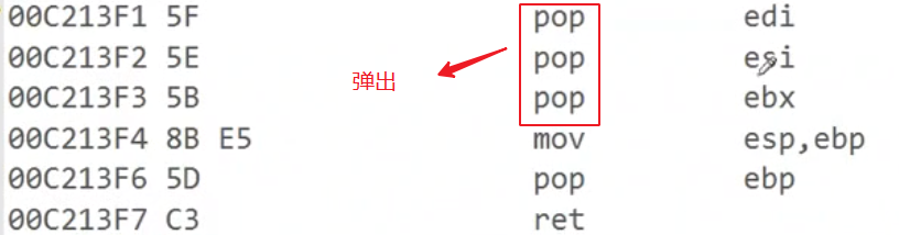 //弹出栈顶的值存放到ebp,栈顶此时的值恰好就是main函数的ebp,esp+4,恢复了main函数栈帧空间的维护