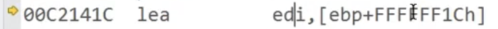 加载有效地址就相当于在edi里面放了一个地址进去,我们这里要是感觉不好观察的话,把【符号名显示】再打开就看见了:
