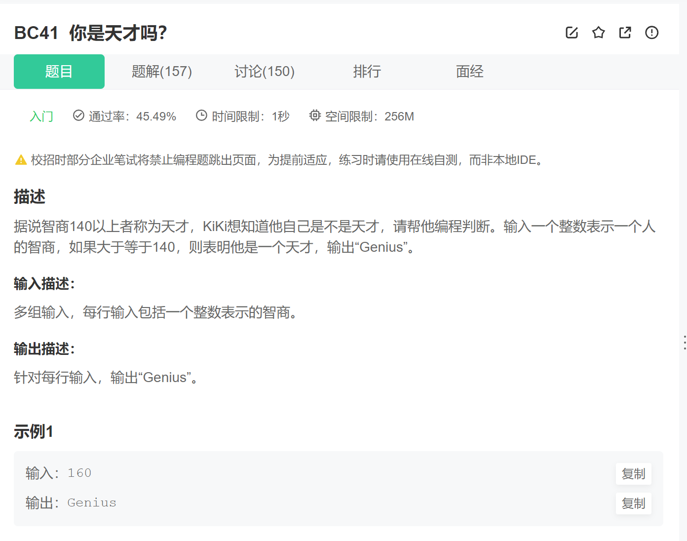 printf("%s","Genius");