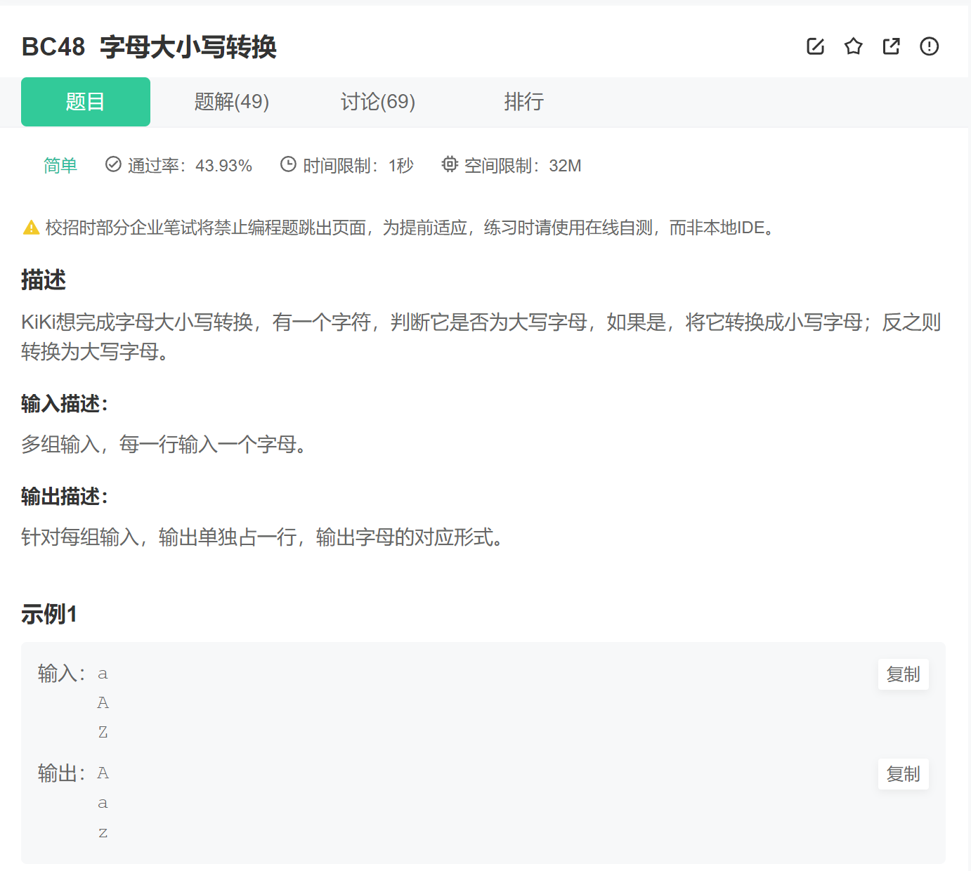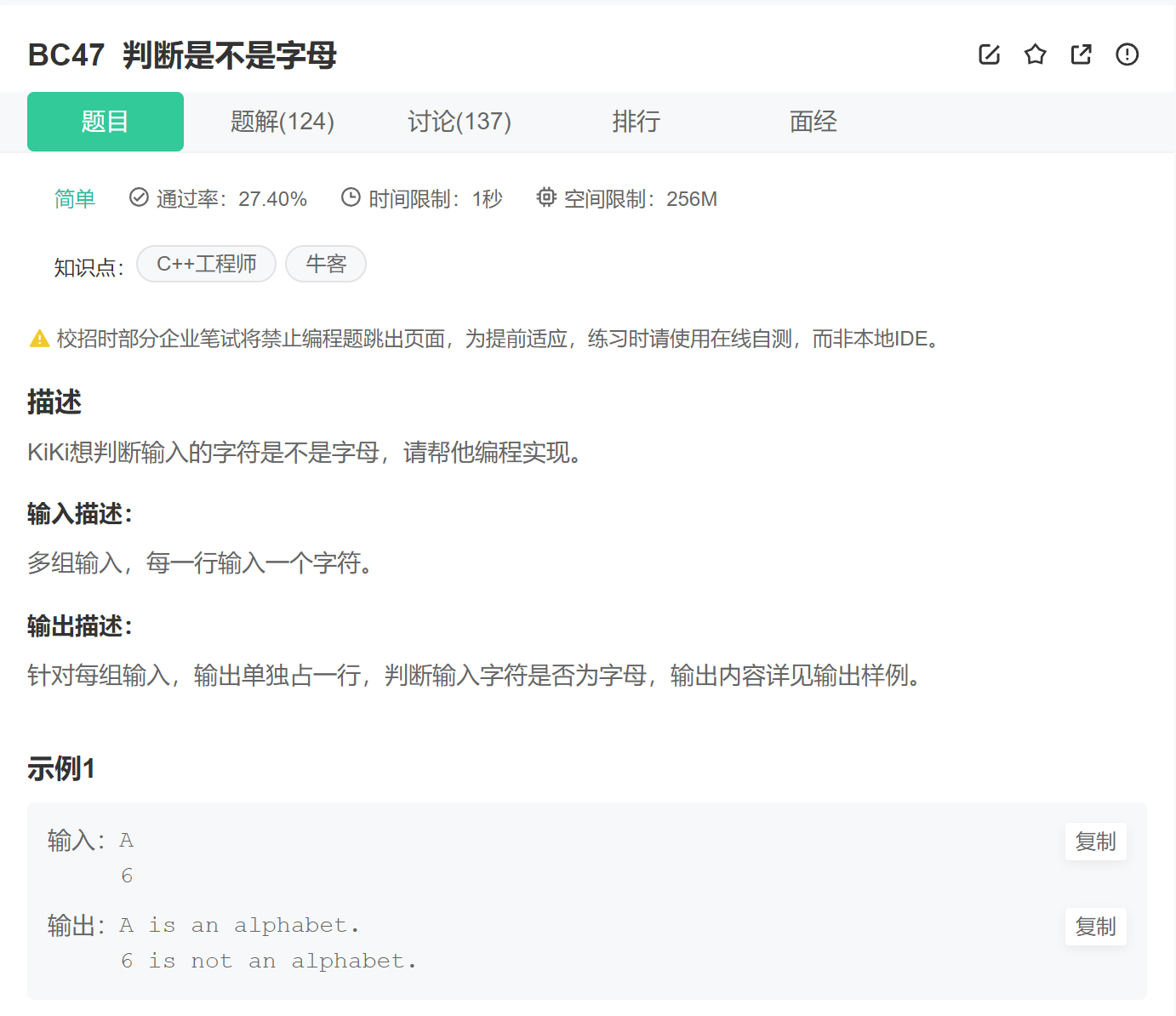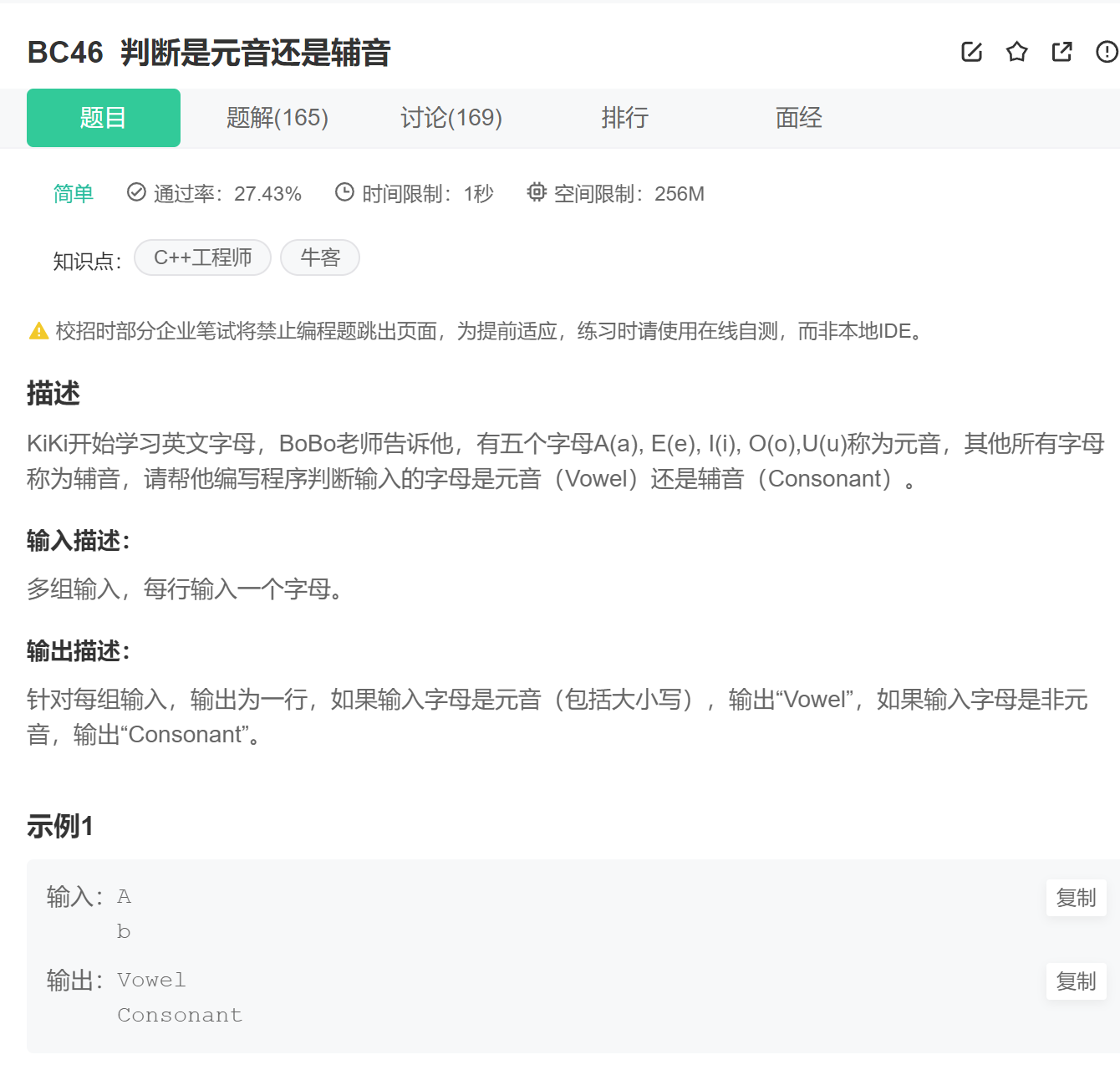 本题和【BC46 判断是元音和还是辅音】的是一个道理的,三种方法均可使用——