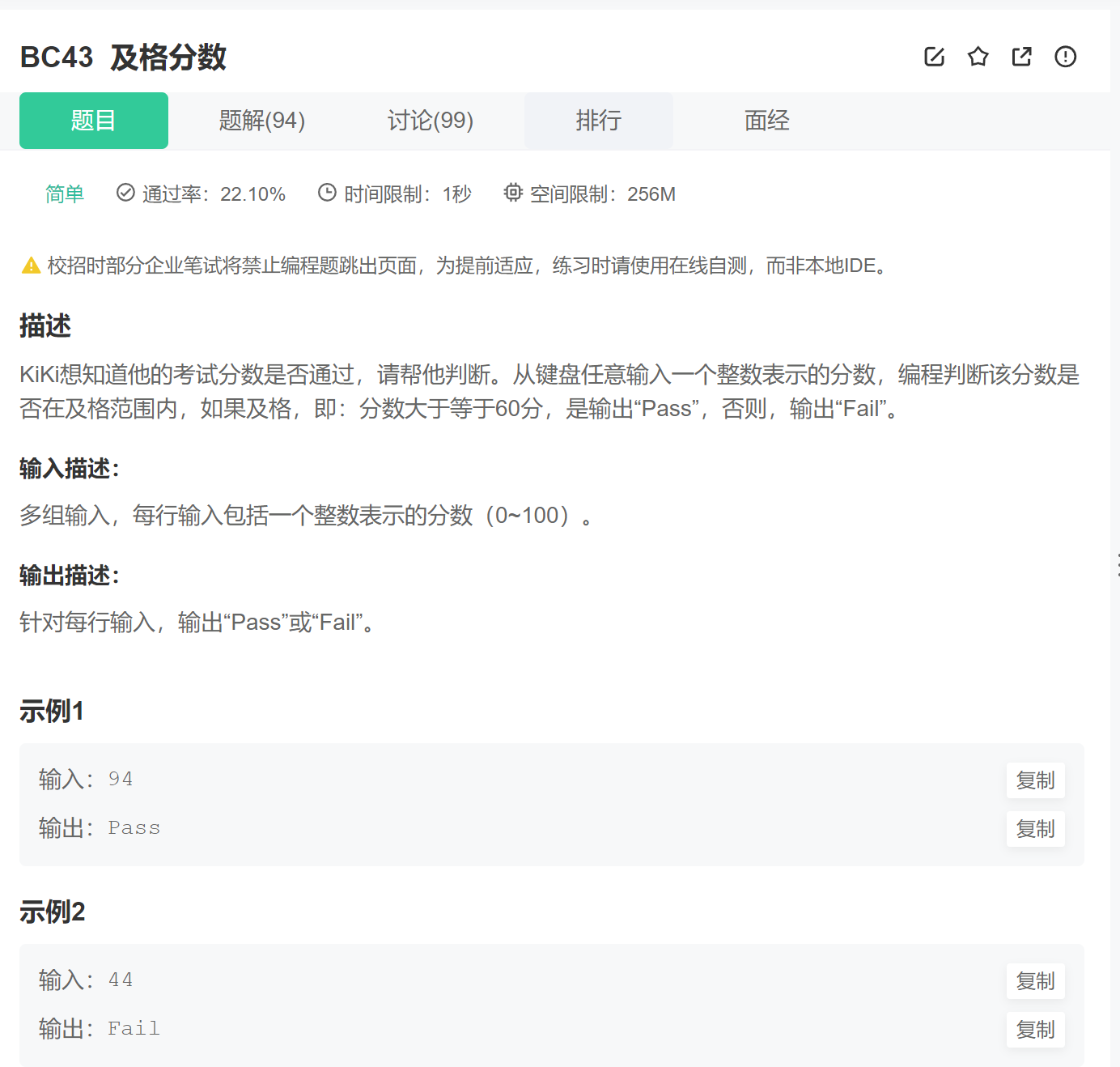 printf("Pass\n");
