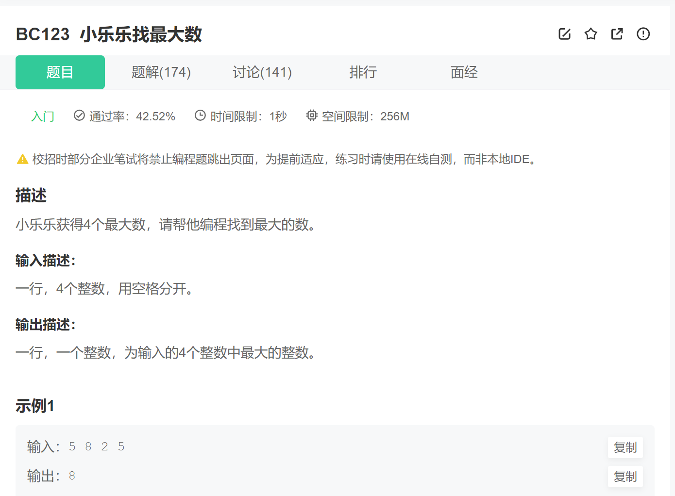前言:上一篇博客又带大家刷了一些相对来说简单的代码题目,本篇文章我们将继续练习下面的题目。这些题目的难度已经有的挖了大坑,大家做的时候要留意,如果做不出来,看了代码演示后要自己多敲几遍,去理解代码的逻辑。 宇宙安全声明:鉴于博主能力有限,本专栏适用于代码小白刷题,大佬们多多包涵(抱拳)!