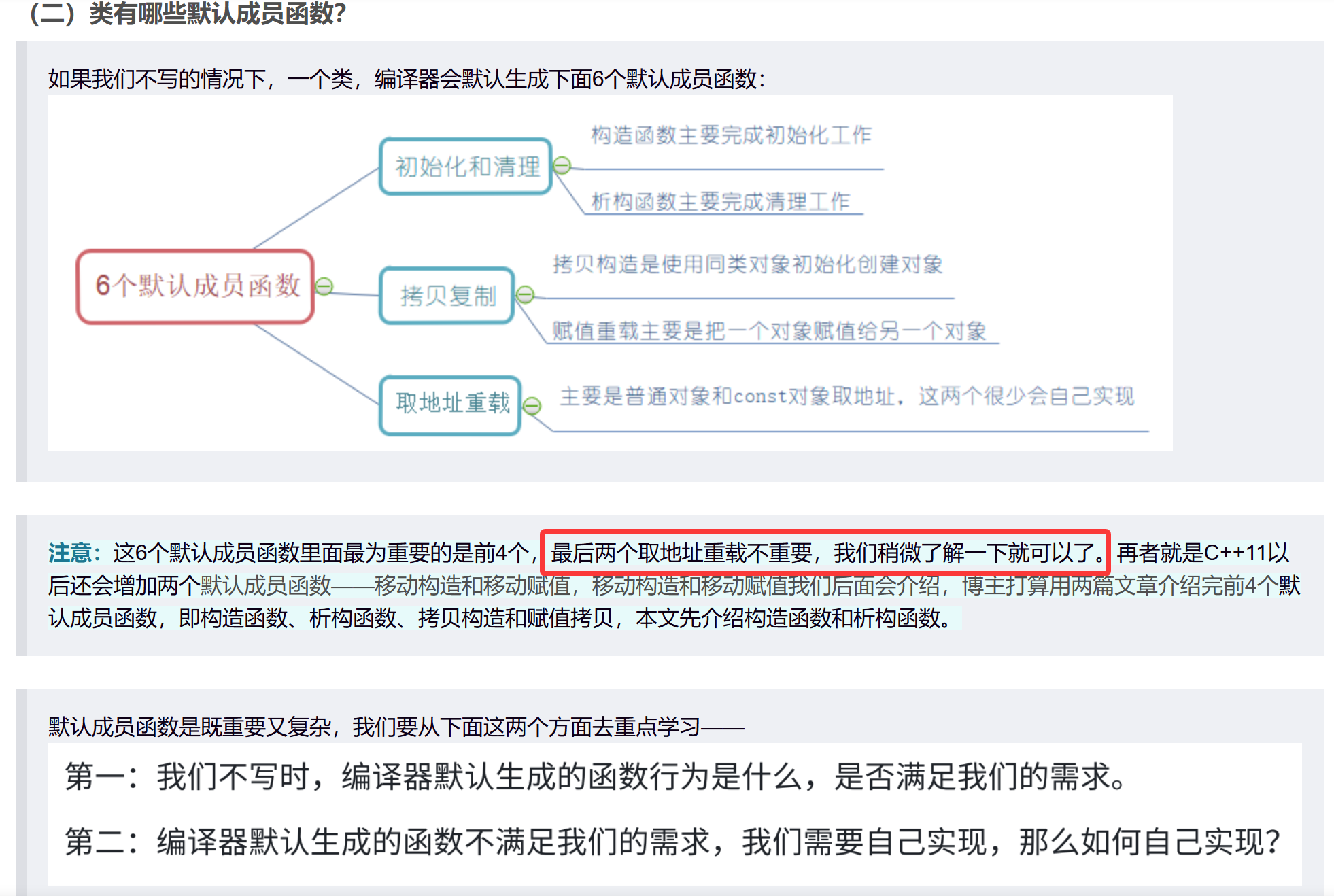 在上篇文章当中,我们已经介绍了(C++11之前)6个类的默认成员函数中最为重要的前4个默认成员函数中的构造函数和析构函数,本文我们在学习了构造函数和析构函数的基础上,继续学习剩下的两个默认成员函数:拷贝构造和赋值拷贝——赋值运算符重载。