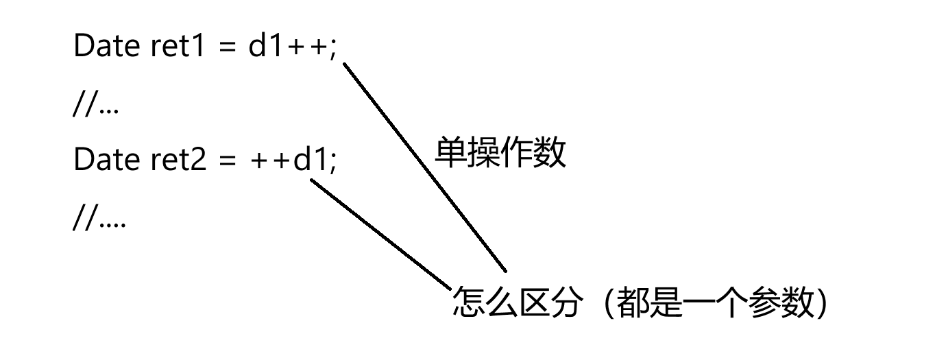 // // Date ret1 = d1.operator++(10); // 显示调用,实参只要是整形就可以