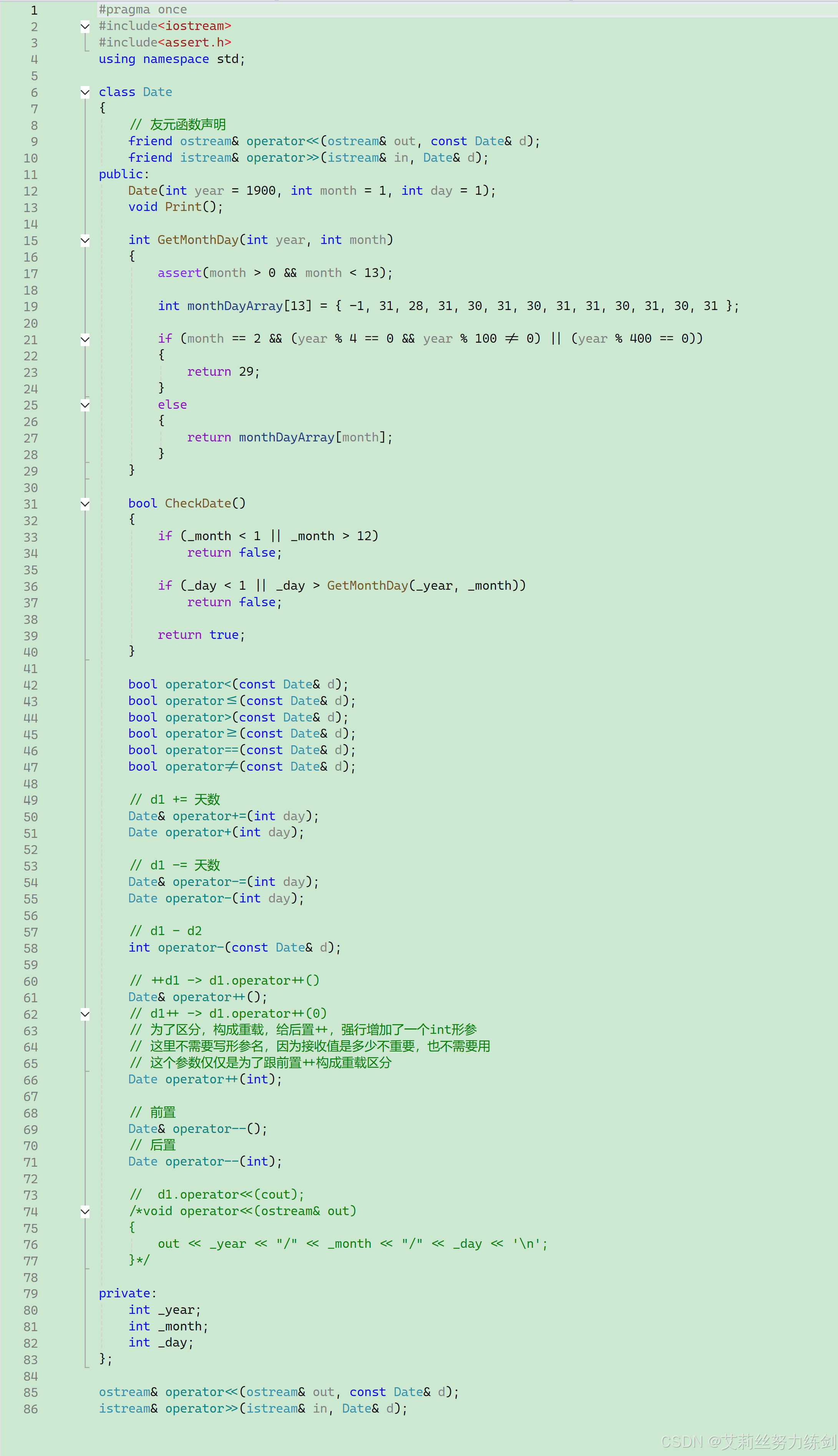 9、日期类不用写拷贝构造(编译器自动生成的就够用了,不用显式写);