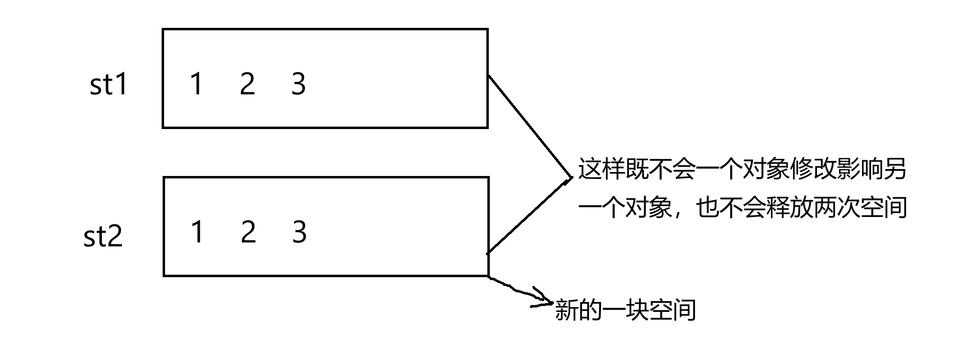 我们新开辟一块空间,这样既不会让一个对象修改影响另一个对象,也不会释放两次空间: