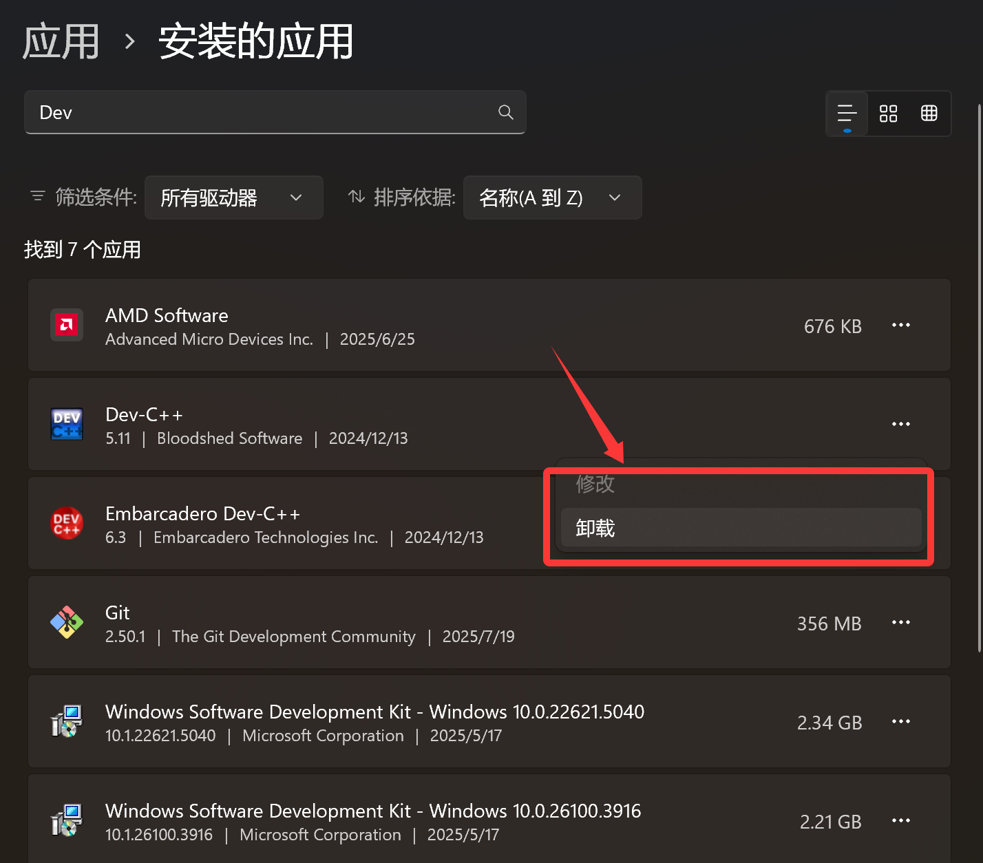 我们在【设置】或者【系统】搜索安装的应用,点击卸载即可: